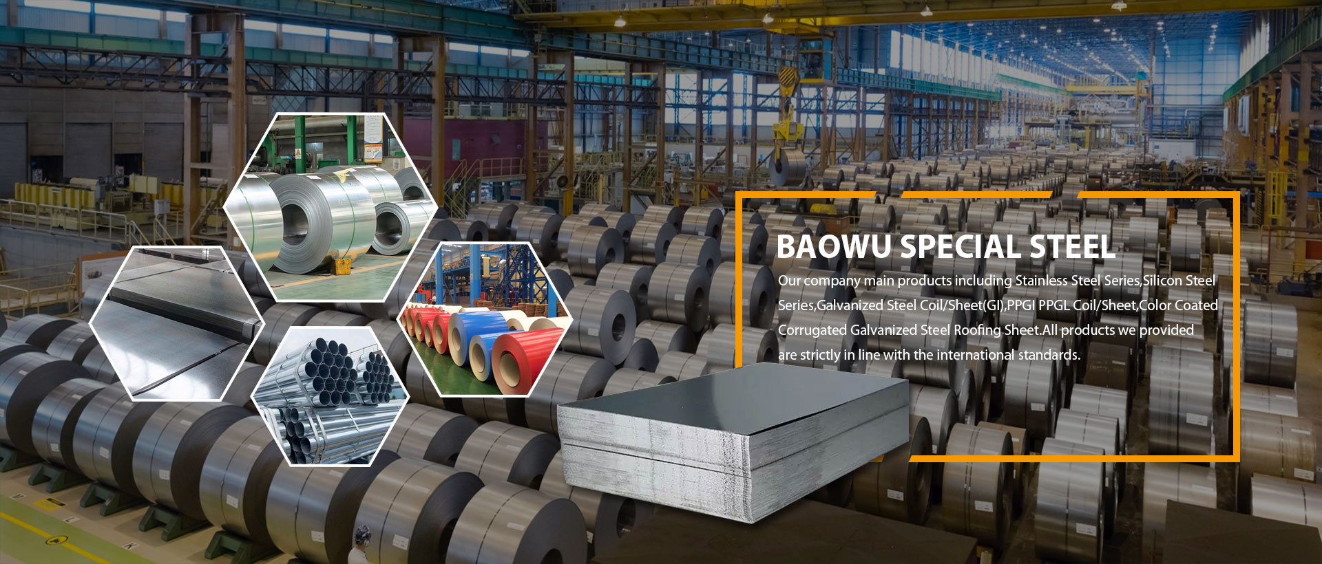 Our company main products including Stainless Steel Series,Silicon Steel Series,Galvanized Steel Coil/Sheet(GI),PPGI PPGL Coil/Sheet,Color Coated Corrugated Galvanized Steel Roofing Sheet.